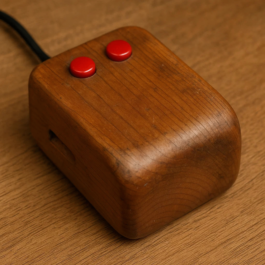 Già: una scatoletta di legno accessoriata di una rotella e due pulsanti… il primo mouse della storia era fatto così!